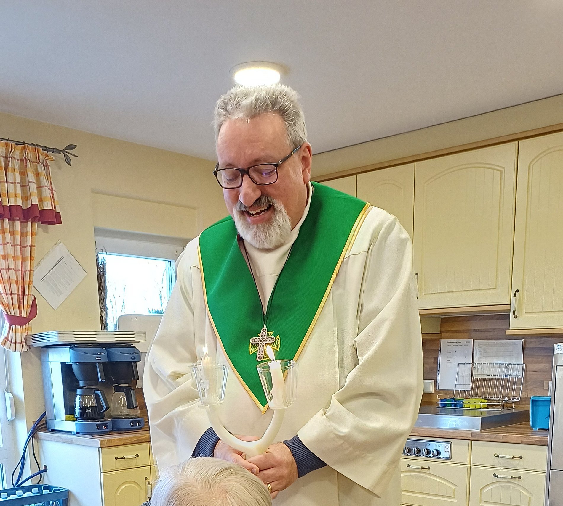 Im Anschluss besuchte der Seelsorger die Pflegebereiche der Einrichtung. Aufgrund eines hohen Krankenstandes hatte dort in der Vorwoche kein Gottesdienst stattfinden können. Auch hier erzählte er die Legende des heiligen Blasius und spendete den Segen, was von den Bewohnerinnen und Bewohnern dankbar angenommen wurde.